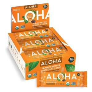 ALOHA Organic Plant Based Protein Bars |Peanut Butter Chocolate Chip | 12 Count, 1.98oz Bars | Vegan, Low Sugar, Gluten Free, Paleo, Low Carb, Non-GMO, Stevia Free, Soy Free, No Sugar Alcohols