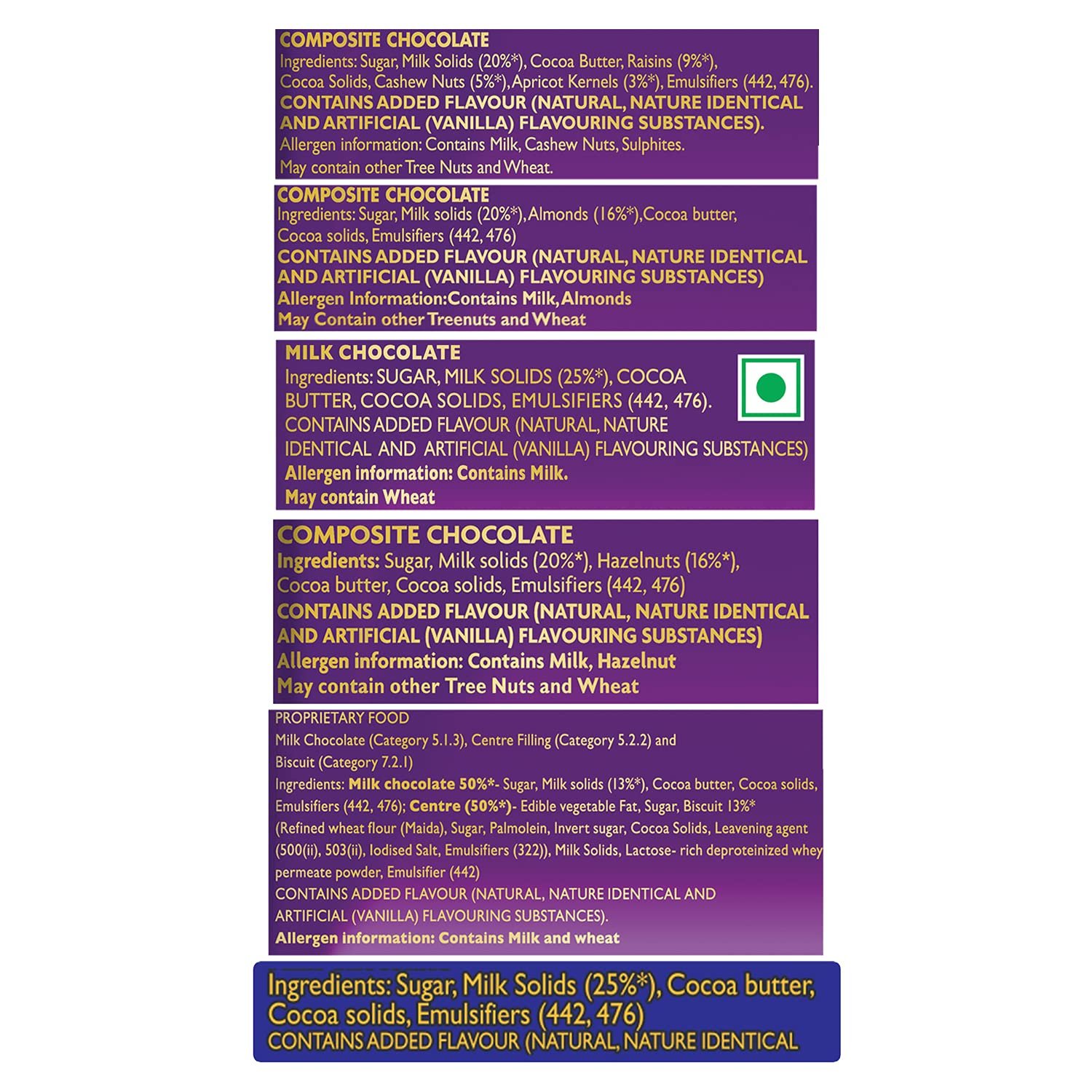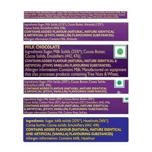 Cadbury Dairy Milk Silk is all about regaling in the chocolate’s richness and creaminess. It offers you the reason to celebrate every small and big occasion of happiness. In short, indulge in a rich, smooth and creamy celebration. This combo comprises 1 pack of Cadbury Dairy Milk Silk 150g, 1 pack of Cadbury Dairy Milk Silk Oreo 130g, 1 pack of Cadbury Dairy Milk Silk Bubbly 120g, 1 pack of Cadbury Dairy Milk Silk Roast Almond 137g, 1 pack of Cadbury Dairy Milk Fruit and Nut 137g & 1 pack of Cadbury Dairy Milk Silk Hazelnut 143g.