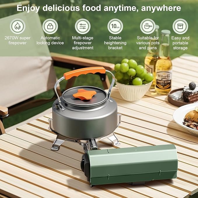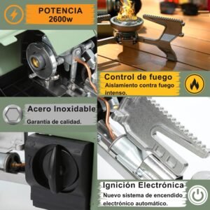 ✅ Quality Guaranteed, Easy Heat Control. Electronic ignition, 2600 watts power, suitable for various cooking environments. Safe and comfortable choice for camping. An excellent alternative to portable butane stoves, portable gas stoves, or camping gas stoves.
