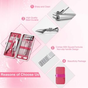 ▶Manicure set. multiple tool options:Professional Manicure Kit contains 18 tools for hand care. facial care and foot care which can meet all of you needs.No need to pay for a single nail clippers or Nose Hair Scissors.money can be saved.Even thick nails can be easily cut off directly.No need to use a lot of force.