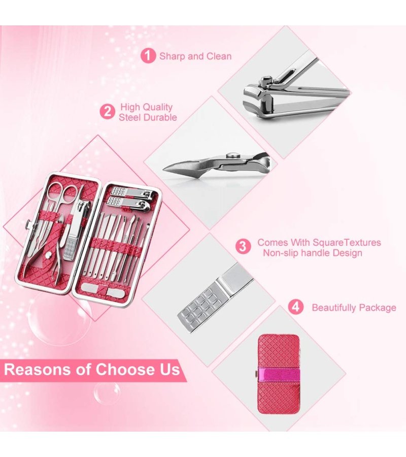 DesignYougai: 20 years of experience in nail clip design and production. constantly improving the customer experience and becoming the leader. | 18 Pieces. All in one | How to Clean Your Manicure Set?After washing. keep your set dry! |