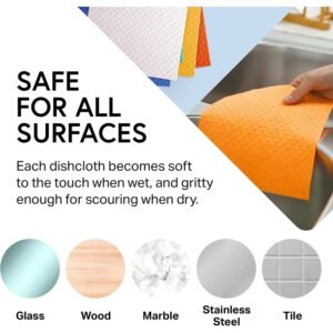 Multipurpose: Safe for marble. stainless steel. tile. and wood surfaces. these kitchen dishcloths also work for scrubbing or drying dishes. cups. mugs. sinks. tubs. and showers.