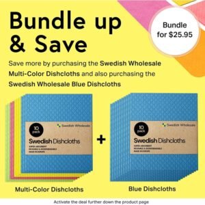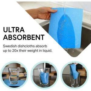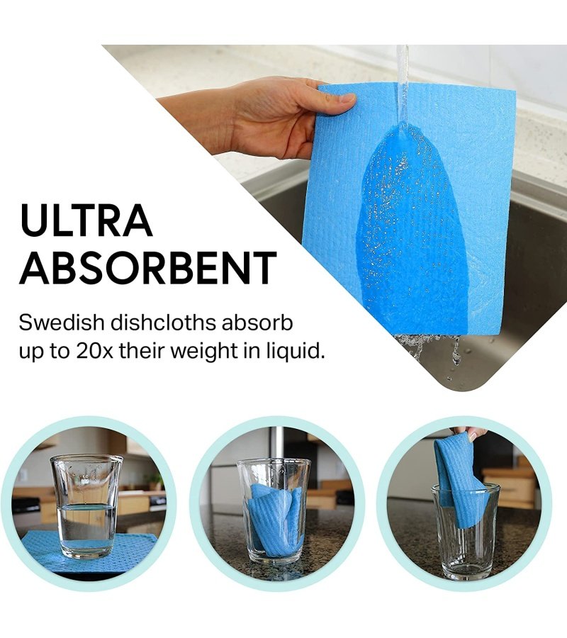 Ultra AbsorbantSwedish dishcloths absorb up to 20x their weight in liquid. | Fast Drying & Odor-ResistantSwedish dishcloths dry out very quickly. which helps prevent odors from developing. | Durable & Long-LastingScrubbing ridges and 3D diamond texture grips surfaces and removes dirt. |