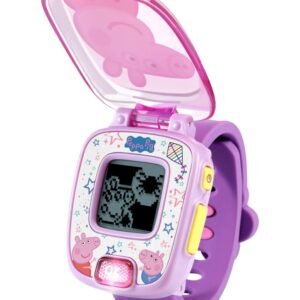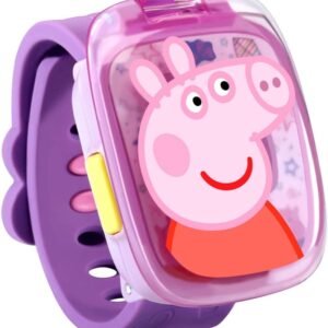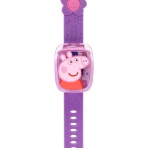 Peppa Pig makes number learning fun! Open the watch cover to hear Peppa Pig’s voice say her favorite phrases. Different clock faces. a timer. and cuckoo alarm clock allow children to build early habits and explore time concepts. Help Peppa Pig count fish. pick out fruits or vegetables and match shadows to practice counting. sorting and matching skills. Keep the learning right at hand!