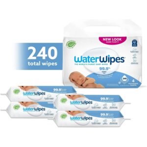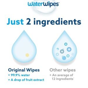 WaterWipes Plastic-Free Original Baby Wipes, 99.9% Water Based Wipes, Unscented & Hypoallergenic for Sensitive Skin, 540 Count (9 packs), Packaging May Vary